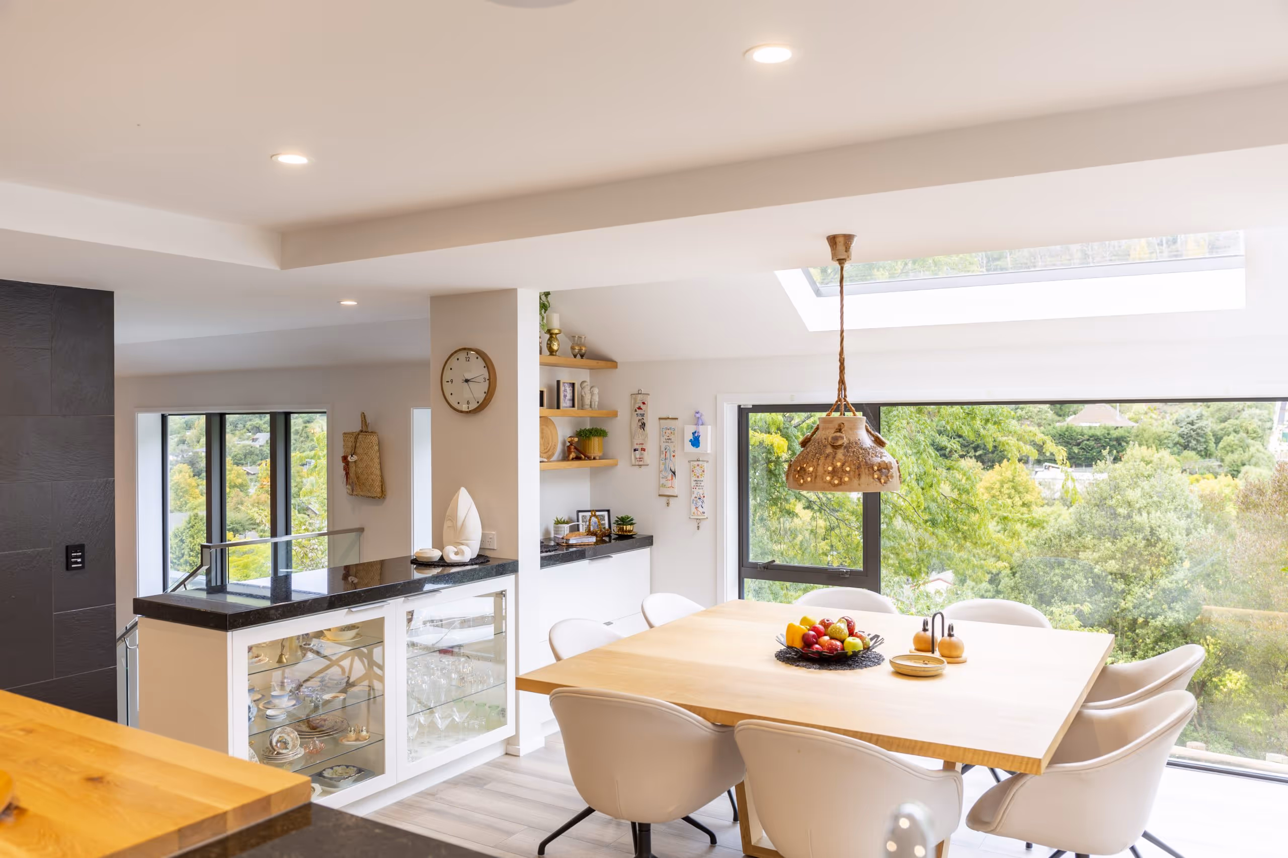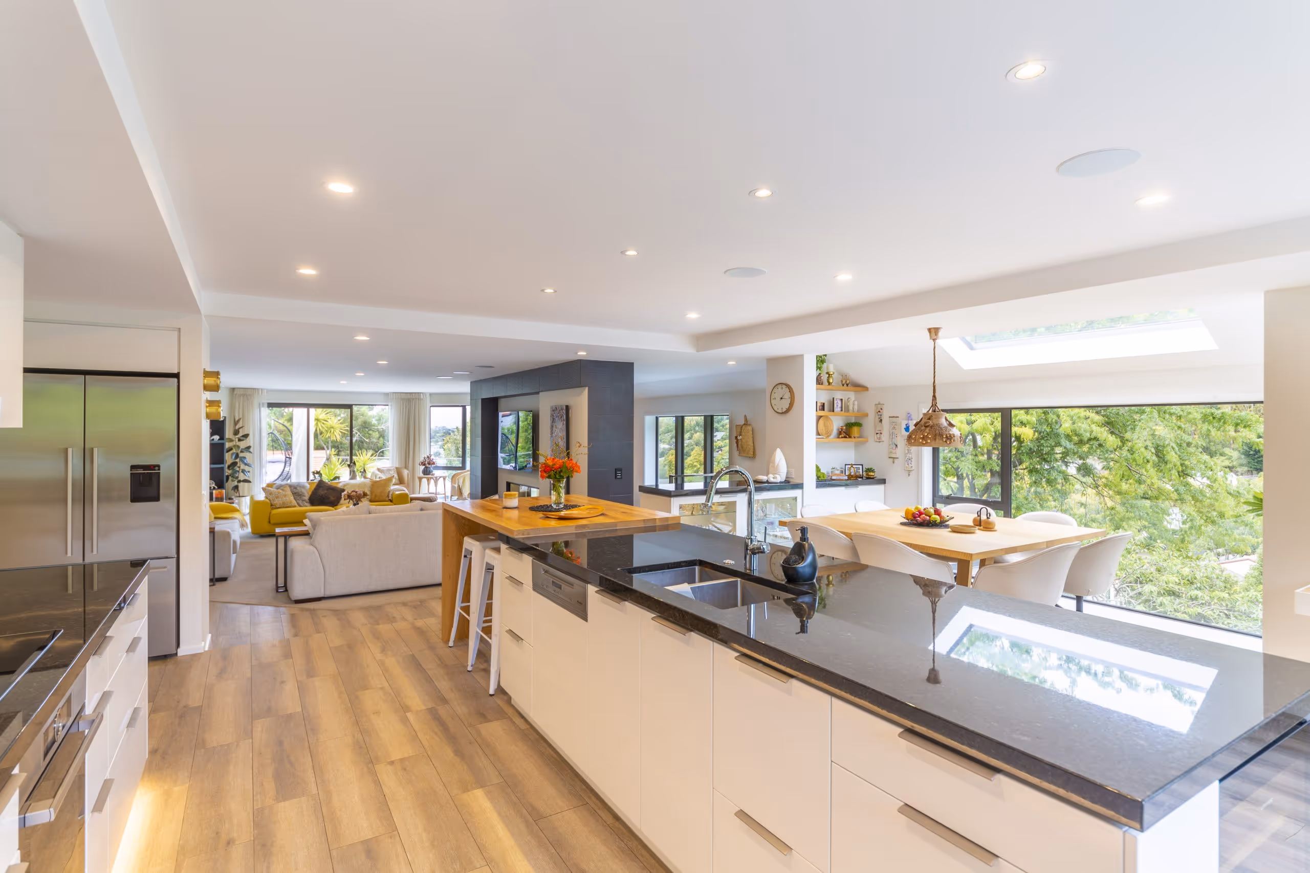 The complexity of renovating the house and successfully connecting it to the extension is best illustrated by the many intricate joins between the walls, ceilings and floors. The renovation transformed a 1980s house into a modern spacious home.